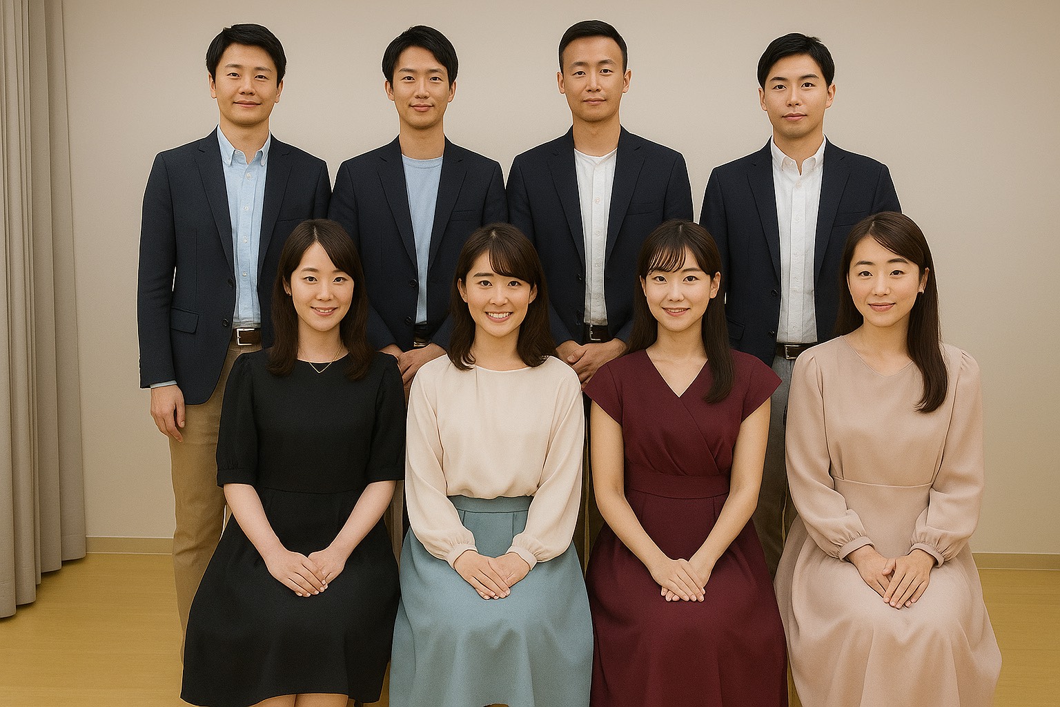 男性陣も清潔感あるヘアスタイルとジャケット姿で登場し、